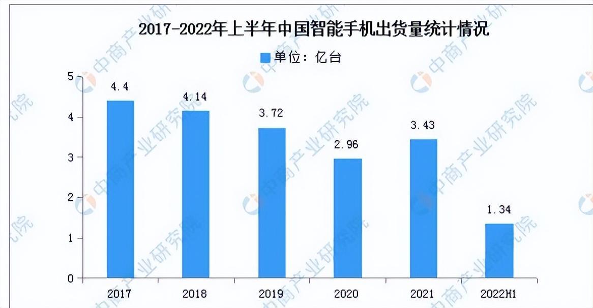 2021年,中国智能手机市场出货量约3.29亿台,同比增长1.1%,但仍未恢复到2019年出货量水平。2022年上半年,中国智能机销量为1.34亿部,创下2015年以来最差的上半年数据。