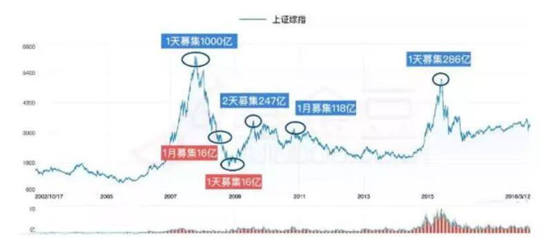 从历史上基金发行规模,就可以明显看出基民追涨的疯狂程度。
