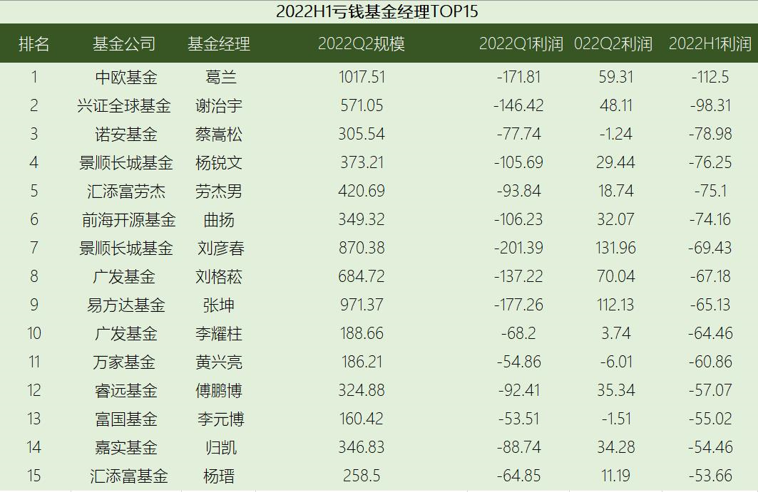 只是没想到一众“明星基金经理”也翻车了,把亏损排行榜拿出来一看,好像是谁名气越大,亏得就越多。