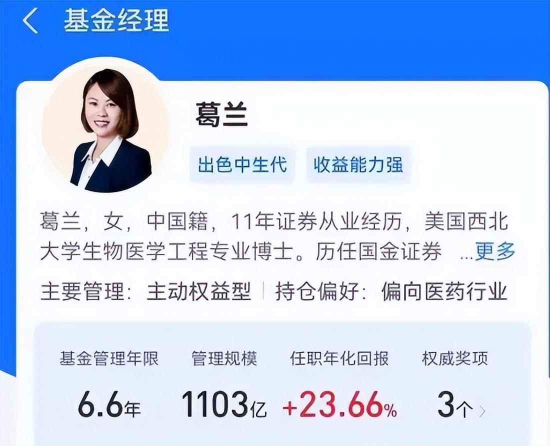 葛兰一战封神,成为让万千基民夜不能寐的“医药女神”。