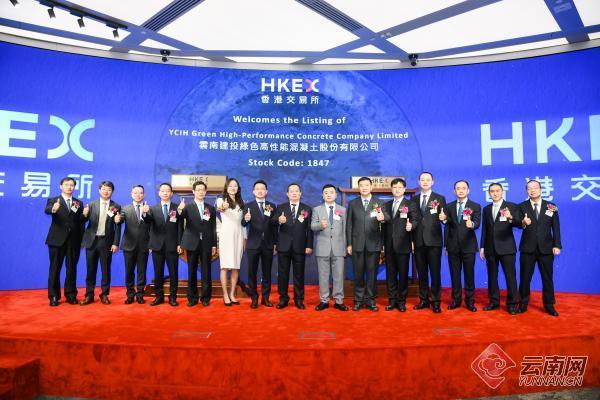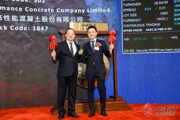 云南网讯(记者 杨建华 通讯员 杨琴)10月31日上午,香港交易所大厅灯光璀璨、暖意融融。随着一记清脆的锣声敲响,云南建投绿色高性能混凝土股份有限公司(以下简称“云南建投混凝土公司”)在港交所成功挂牌上市,正式面向全球公开发售股票,新股名称为云南建投混凝土,股票代码HK 1847。成为云南省第5家在港交所上市的公司,也是《云南省推进企业上市倍增三年行动方案(2019—2021年)》实施以来的“金种子”企业第一家香港上市公司。