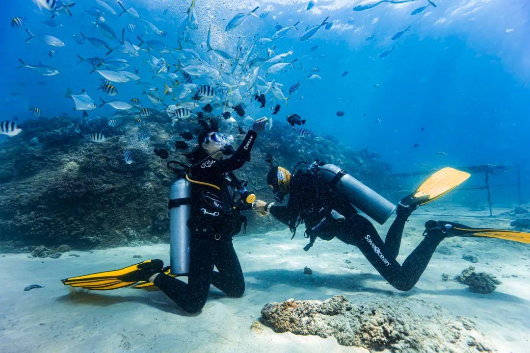 4月29日,在三亚蜈支洲岛海域,游客正在体验潜水,感受热带海洋魅力。海南日报记者 王程龙 摄