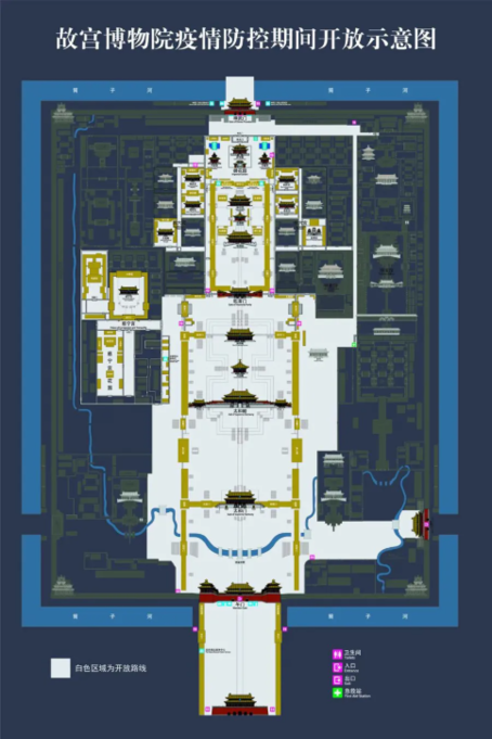 结合当前常态化疫情防控工作要求和故宫博物院实际情况,目前开放前三殿、后三宫、御花园、慈宁宫、慈宁宫花园、寿康宫区域的室外展区及东西六宫部分院落。珍宝馆、钟表馆等室内展厅和室内服务场所暂不开放。午门城楼、东华门城楼、神武门城楼及相连城墙暂不开放。开放的原状陈列殿宇采取殿外护栏隔离的参观方式。