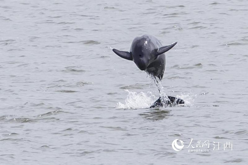 在赣江南昌段扬子洲水域,江豚在水面跳跃。 余会功 摄