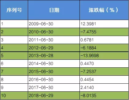 下面,我们再来看看自2009年以来至今,上证综指在每个六月的涨跌情况。