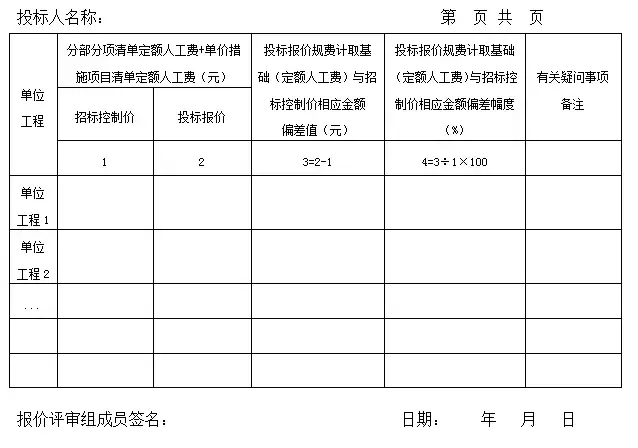 对按本款第1项规定评审通过的投标人投标报价中的规费计取基础(定额人工费)评审,投标报价中单位工程的定额人工费低于或高于招标控制价相应金额30%的,报价评审组应对其投标报价中规费计取基础的合规性、合理性进行分析,并可根据分析情况和评审需要向投标人提出询问。