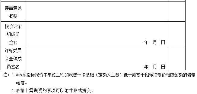 5、对投标人投标报价中单位工程的规费计取基础(定额人工费)低于或高于招标控制价相应金额30%的,报价评审组经评审认为其不存在擅自改变规费计费基础计取规费情形的,应当书面说明理由,报价评审组成员应当签字并承担相应法律责任。