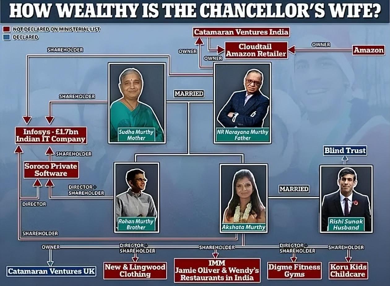 苏纳克家族的财富,主要来自于其岳父纳拉亚纳·穆尔蒂。