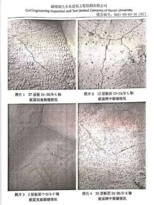 湖大检测公司检测鉴定报告中的裂缝情况。受访者供图