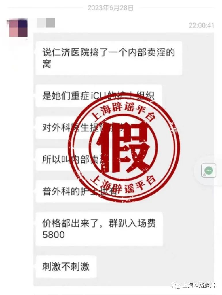 近日,网传上海交通大学医学院附属仁济医院一名外科医生参与嫖娼、某科室组织卖淫活动。记者从上海市卫生健康委、仁济医院获悉,经核实,该聊天记录所述内容完全不实。