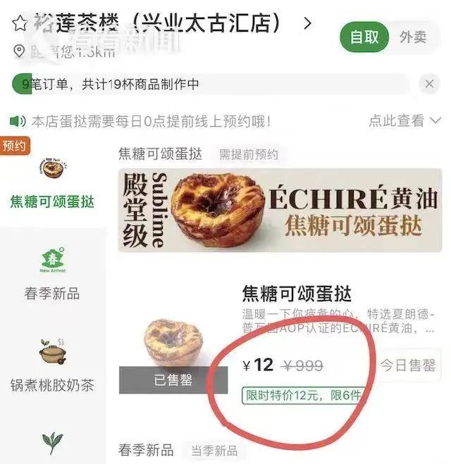 近日,有网友反映上海新晋网红店“裕莲茶楼”的焦糖可颂蛋挞价格虚高,预约购买机制不合理。