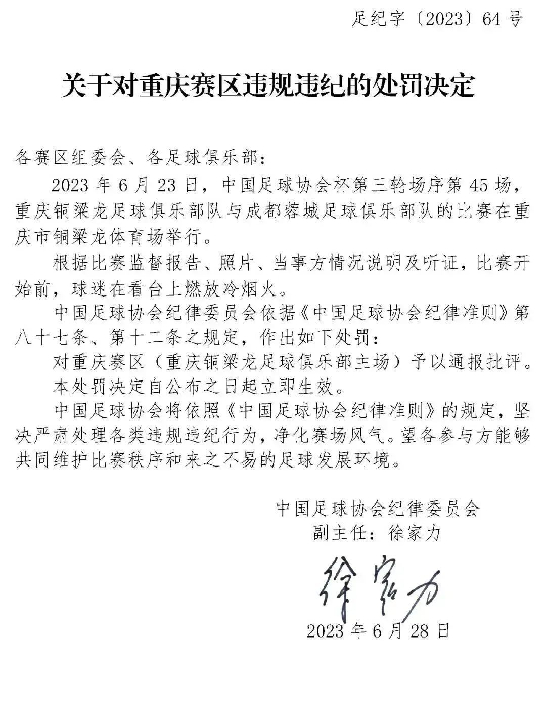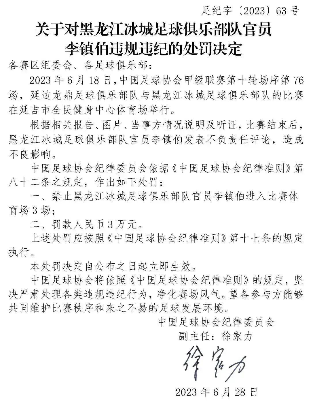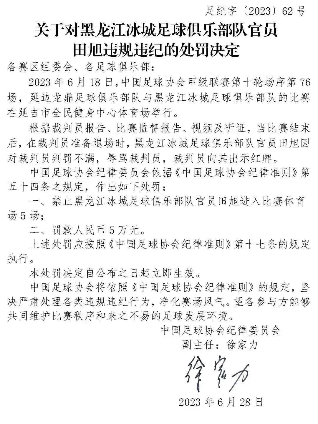 6月28日,中国足球协会官方网站发布五份处罚决定。具体内容如下。