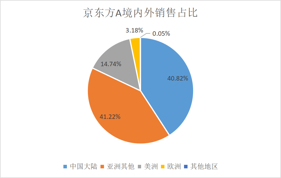 上图是京东方的外销内销情况,中国大陆的占比是达到了40.82%,最大的部分是亚洲其他地区,像韩国、日本,其实外销占比已经超过一半了,这也不免让我担心它后续业绩的增长是否可持续。