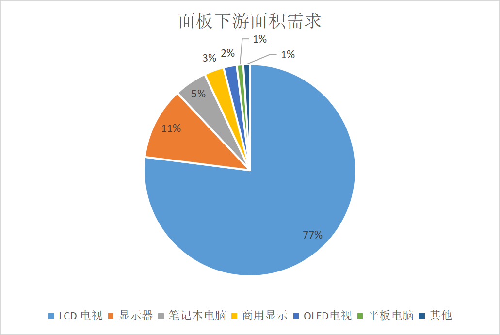 上图是面板行业下游应用中对于面板的需求面积占比,占比最高的就是LCD电视,占了77%,其次是显示器,占了11%。