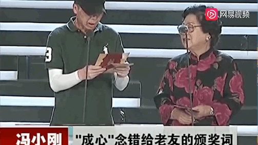 在念颁奖词时,冯小刚一个“口误”,把“你是绽放在黑土地上的一朵奇葩”,念成了“你是绽放在黑社会上的一朵奇葩”。