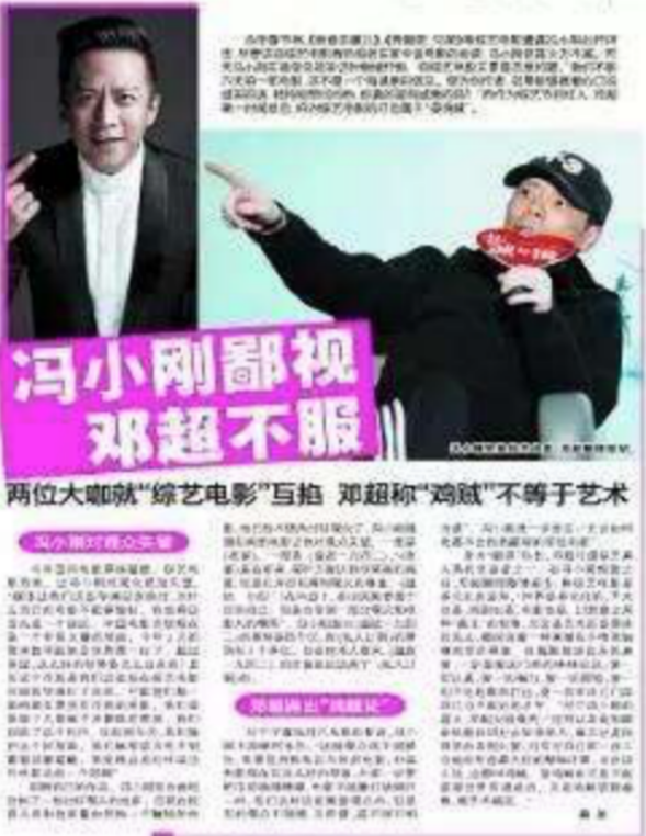 八年过去,邓超早已不是当初的愣头青。冯小刚假装手滑,那邓超就假装被盗号,用一篇“鸡贼与艺术”,隔空回应了冯小刚。