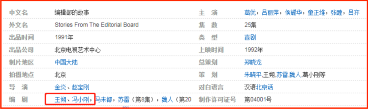 于是,《编辑部的故事》编剧那一栏,这才有了“冯小刚”三个字,拉开了他事业的序幕。