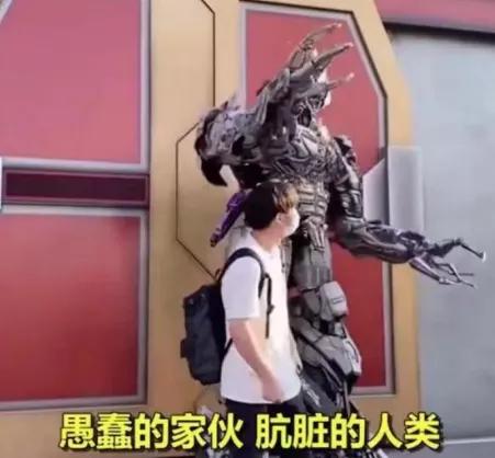例如,游客朝“威震天”竖中指,直接被怼:“你这个手势太不礼貌了,你爸爸妈妈没教过你吗?”“下去,我不想跟他照相。”