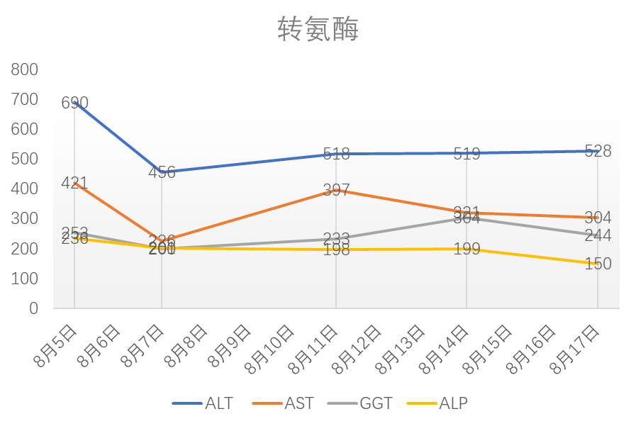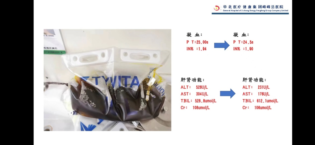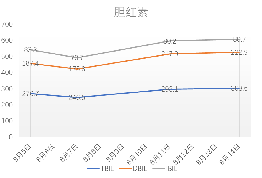 3次治疗,间断进行,为期一周的人工肝治疗后,病情明显好转。
