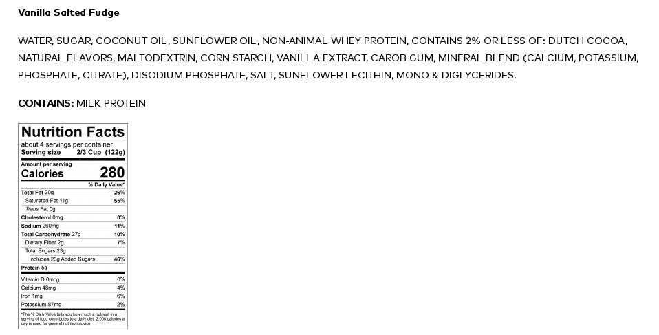 Perfect Day香草盐软糖冰淇淋配料和营养成分表。 官网截图