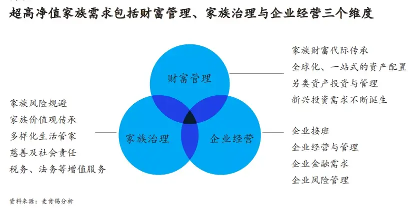 根据2020年瑞银调研,中国超高净值家庭的平均净财富规模为9.43亿美元。这些家庭目前的财富管理主要是依赖于自我管理,未来随着全球成熟市场的并拢,将更加倾向通过专业机构来管理财富。