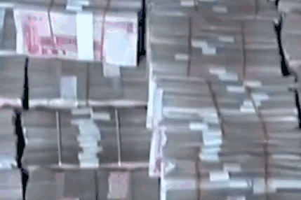这些看似不起眼的纸箱,里面装满了一捆捆的现金,垒起来足以搭成一面又高又厚的钱墙。