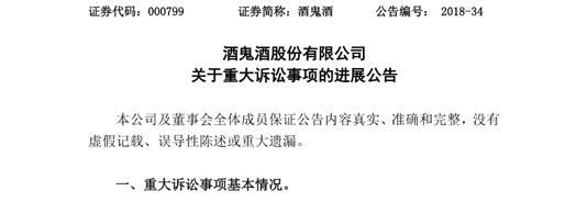 不过,酒鬼酒却在公告中表示,公司已于2013年对上述案件未追回资金作损失处理,本次诉讼事项对本期利润或期后利润暂无重大影响,上述诉讼事项终审判决并执行后如产生影响,本公司将及时进行披露。