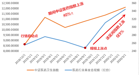 但是全市场医药主题基金规模依然持续萎缩,直到2019年9月底,大多数基民才醒悟过来,