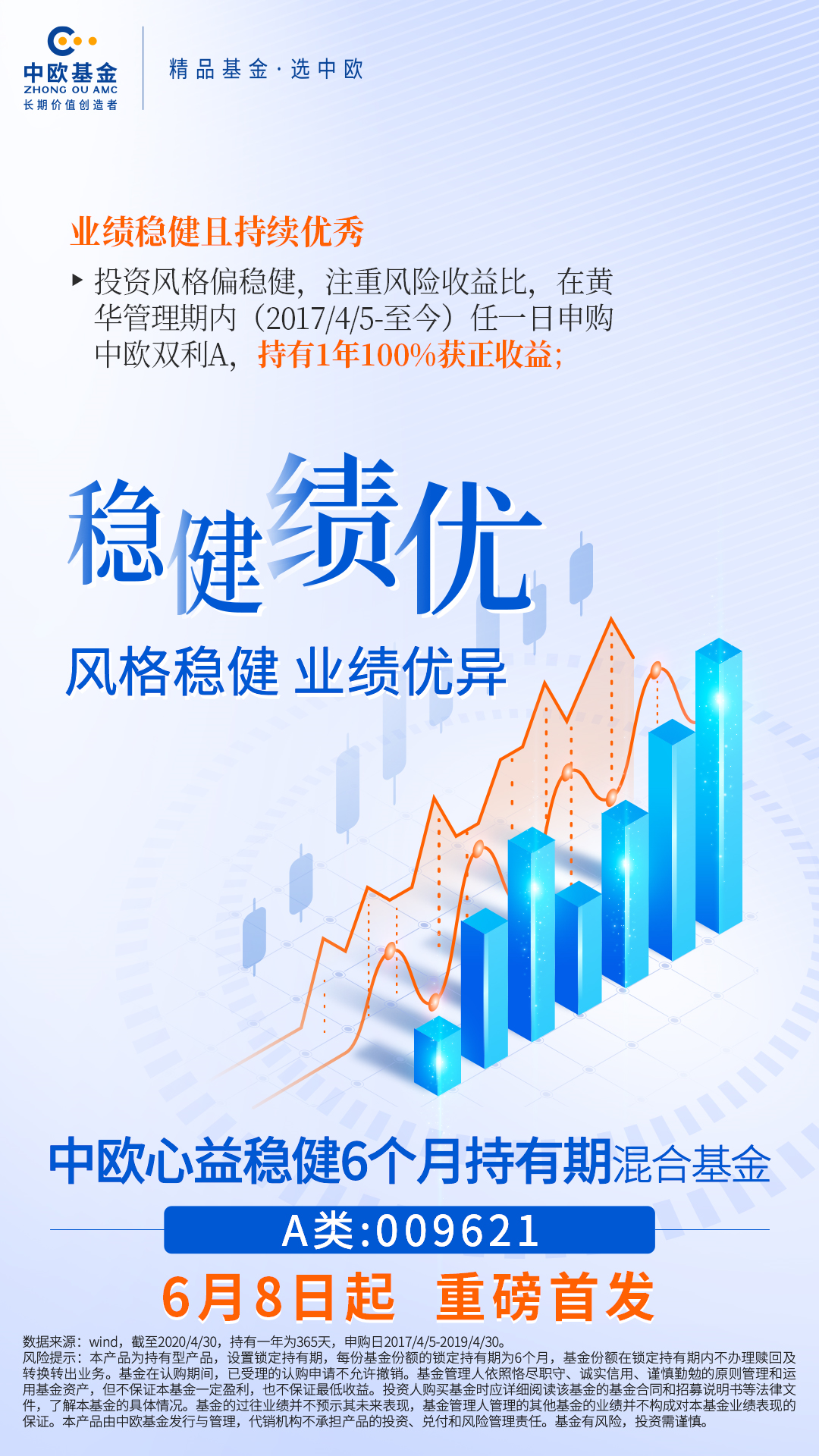 “中欧心益稳健6个月持有混合基金(A:009621 C:009622)”