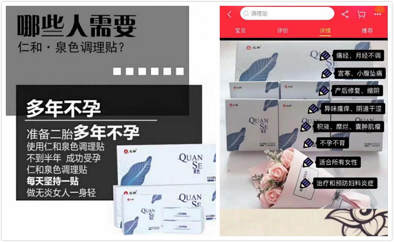 在电商平台和社交平台,代理对产品的相关描述中,这款产品能“调理”多囊卵巢综合征、子宫肌瘤、盆腔积液等妇科问题。