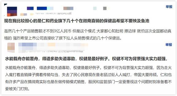 宣传推广上跑偏,销售方面,仁和也不走药企的寻常路。医院、药店、电商等销售渠道之外,仁和还格外看重微商的带货能力。