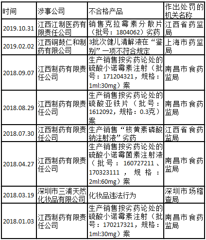 2018年以来,仁和药业多次因质量问题受到监管部门处罚