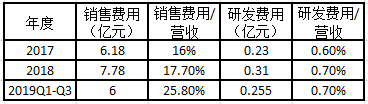 研发吝啬,但在营销方面,仁和出手阔绰,销售费用在过去四年间翻倍。2018年的销售费用高达7.78亿元,约是同期研发费用的26倍。今年前三季度销售费用也已高达6亿元。