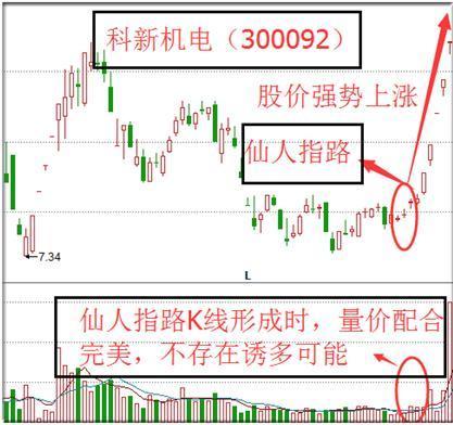 仙人指路K线出现时,量能要稳定。量价配合,说明诱多的可能性小。