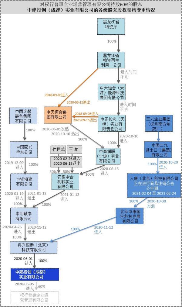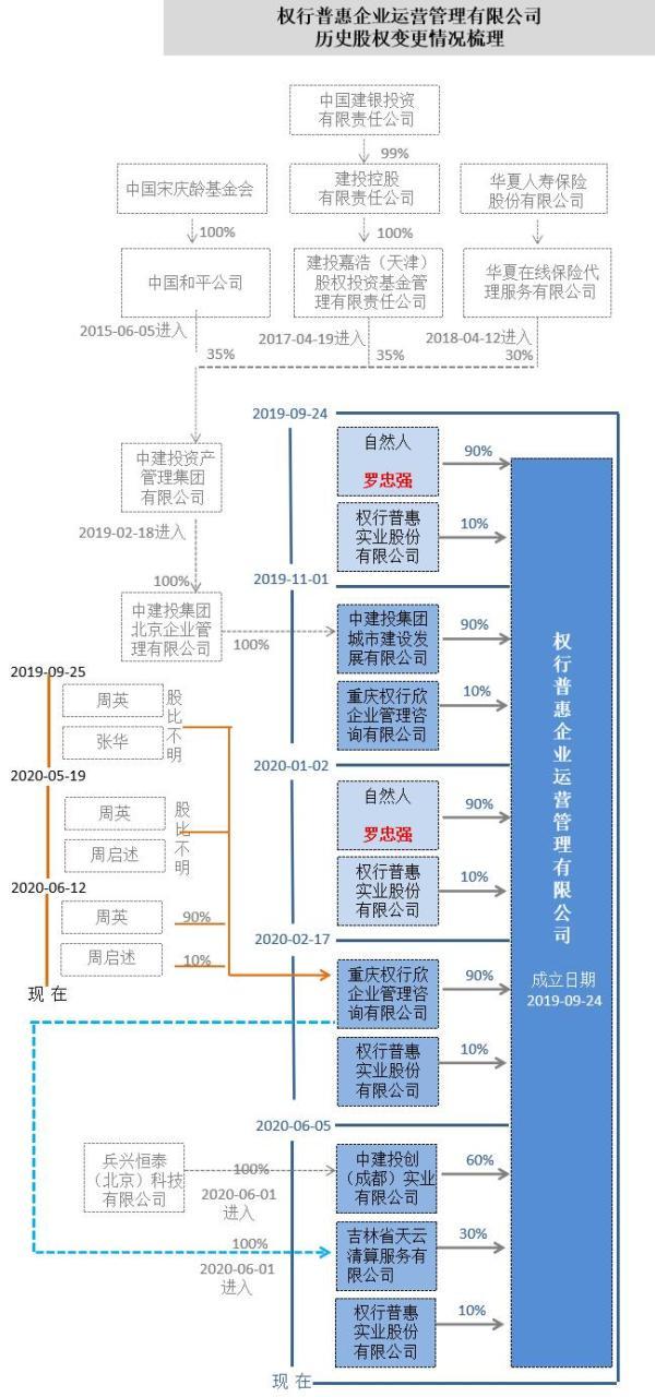 由工商变更记录可以看出,权行普惠企业运营管理有限公司在不同阶段由不同的人控股。
