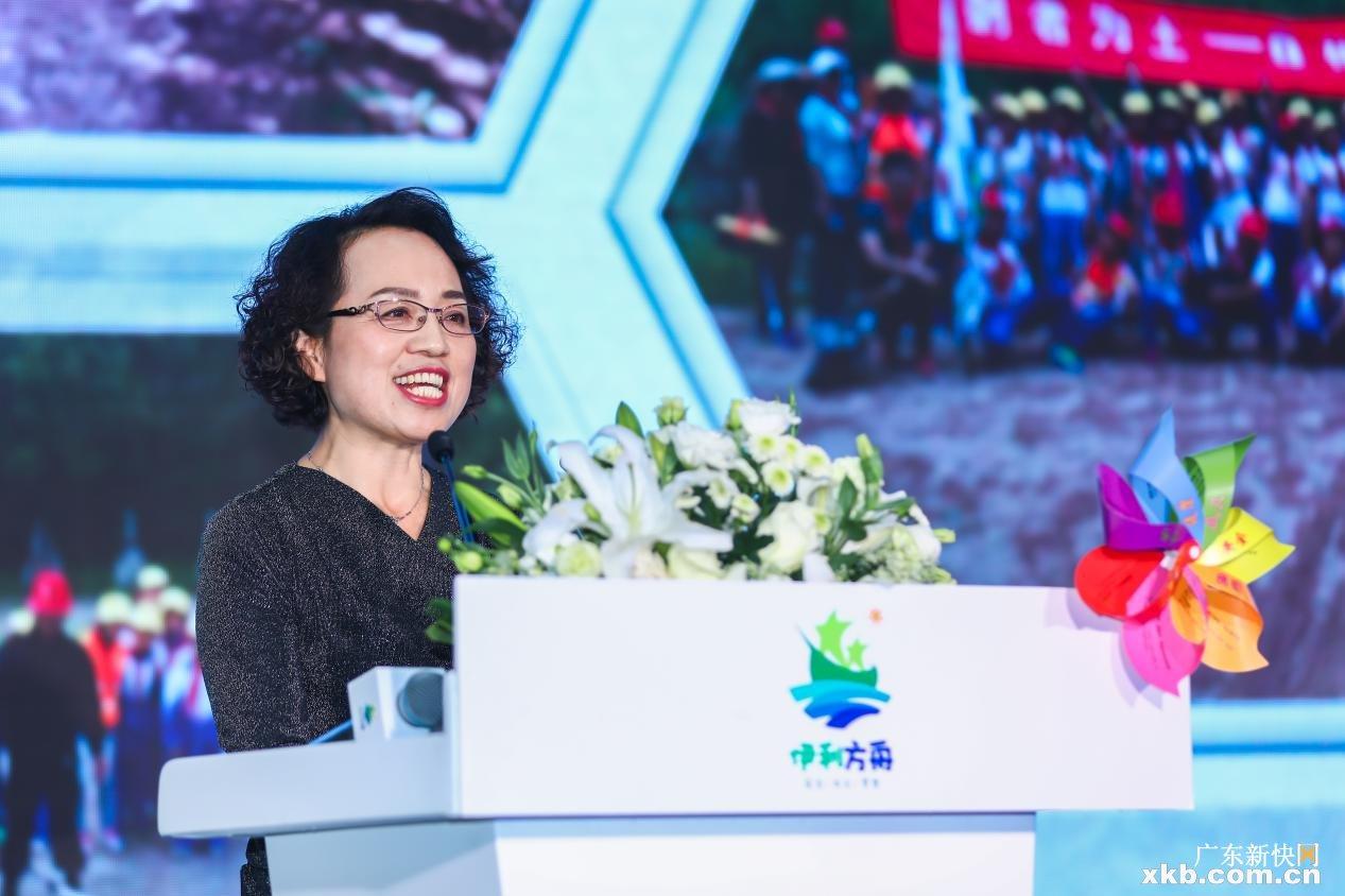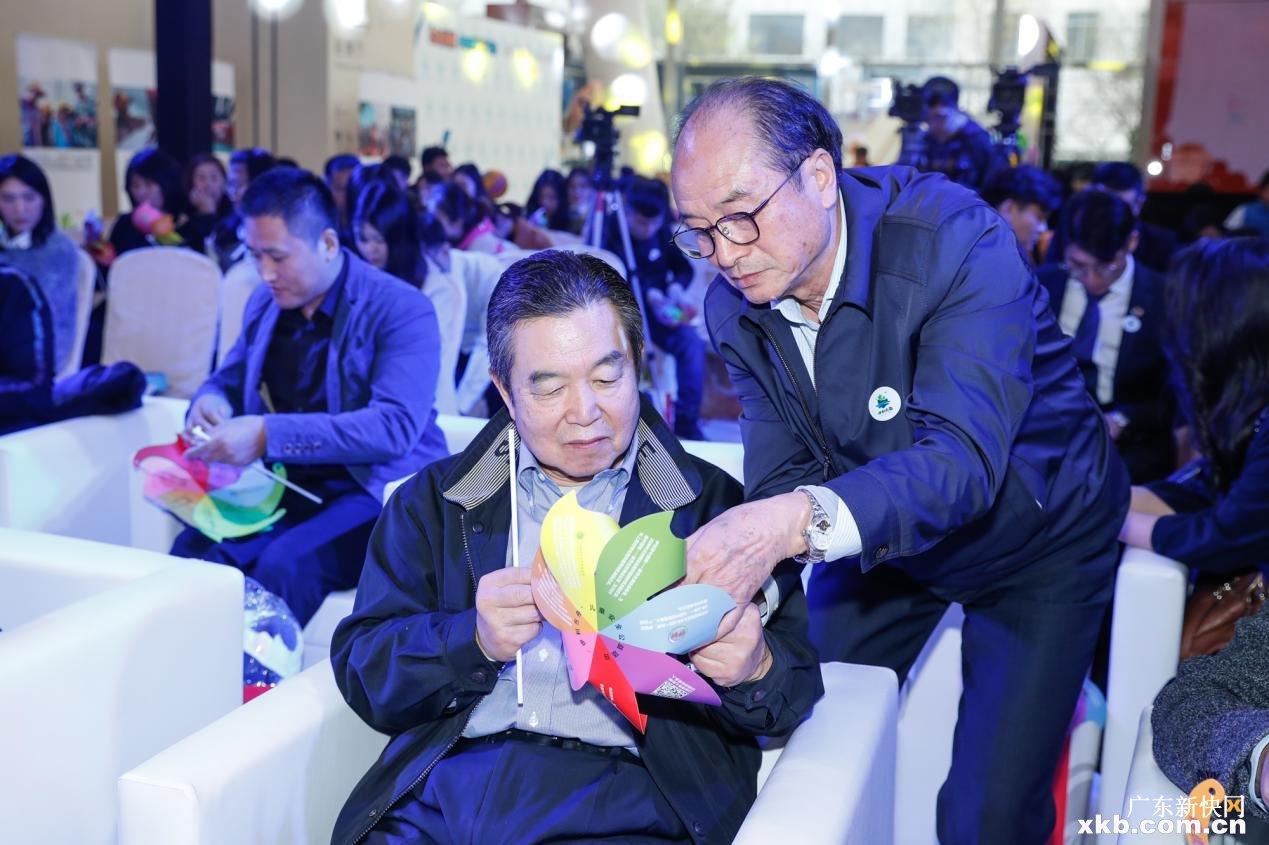 图:内蒙古伊利公益基金会理事陈力华(左)参与“伊利方舟七彩帆”互动环节