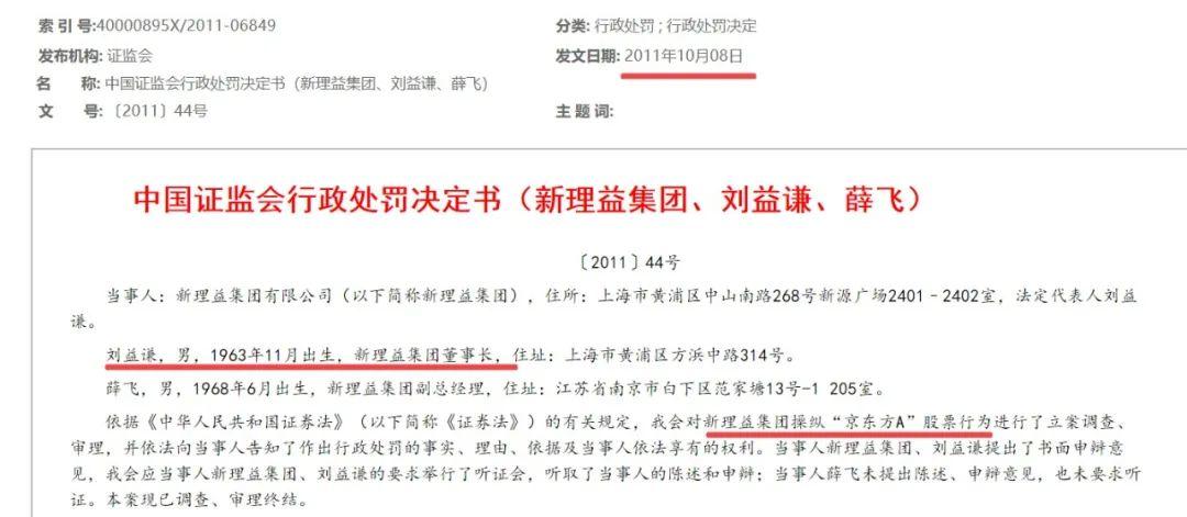 随后,刘益谦进入定增市场,动作频繁,被称为“定增大王”。2011年10月,刘益谦还因新理益集团操纵“京东方A”股票受到行政处罚。