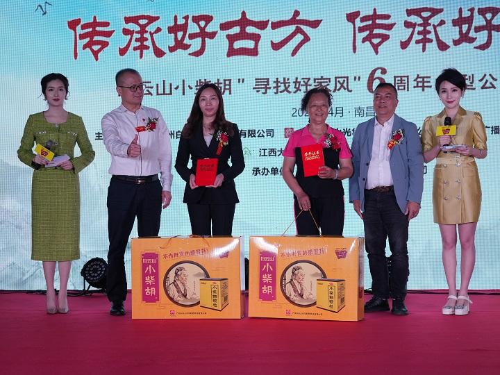 白云山小柴胡“传承好古方 传承好家风”公益活动自2018年起,已连续六年在广东、广西、湖南、江西、河南、湖北、云南、山东等多个省区举办,为扎实推进社会公德、职业道德、家庭美德、个人品德建设,寻找到了一大批好家庭和好家风的故事,同时也唤醒和吸引了众多社会人士主动加入到“寻找好家风”的公益事业队伍中来, 大家紧跟白云山小柴胡的步伐,一起用各自的力量为社会传承与传递爱和温暖。本次“好家风”公益合作伙伴有:江西大参林药业股份有限公司和江西九州通药业有限公司。