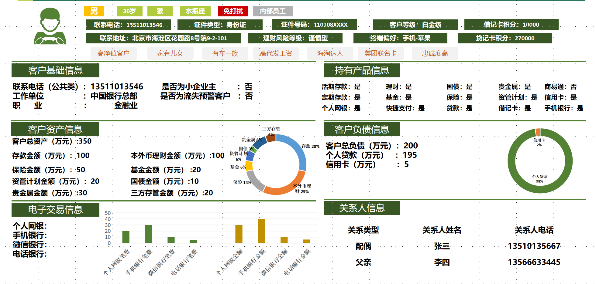 一是建立全行客户标签体系,形成千人千面的客户视图。