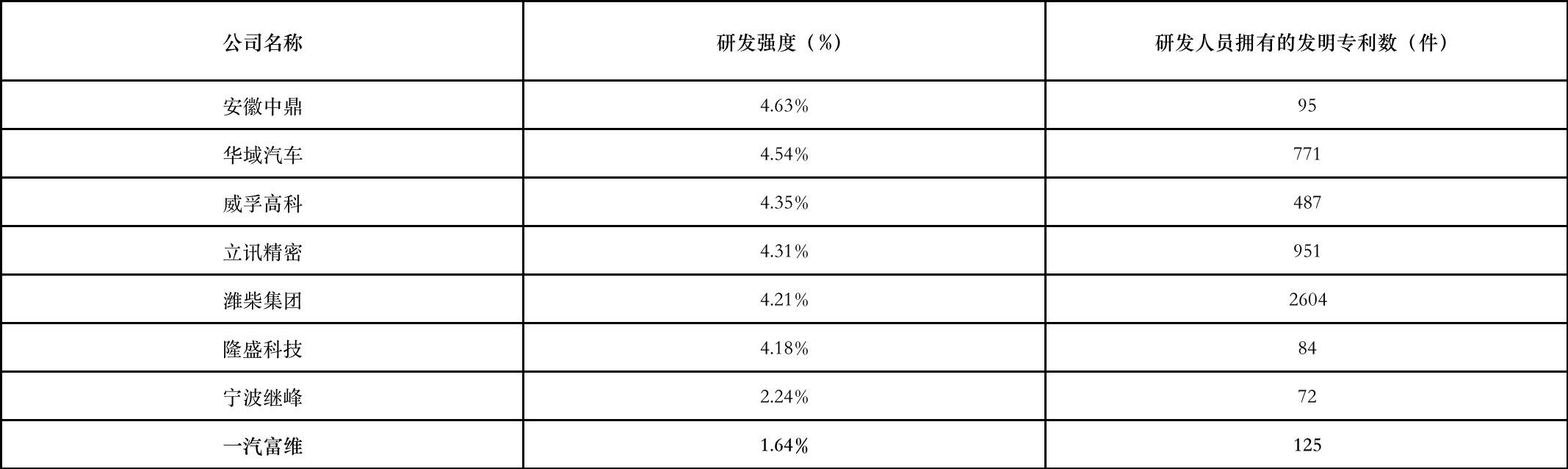 表1 “汽车零部件”赛道企业研发强度和发明专利数(节选)