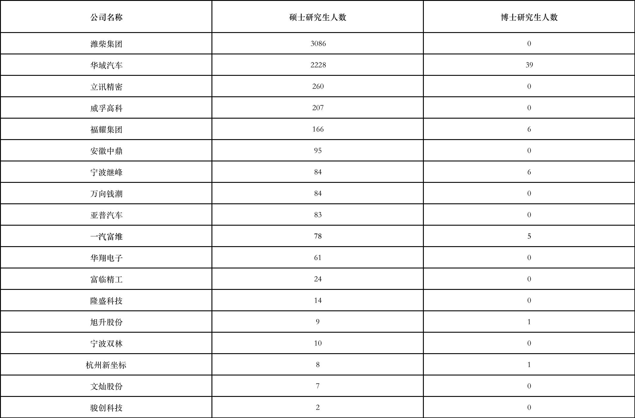 表2 “汽车零部件”赛道研发人员学历构成(节选)
