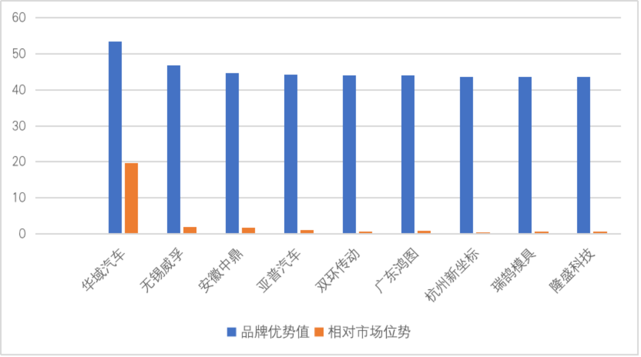 图2 “零部件”赛道企业品牌优势值和相对市场位势(节选)