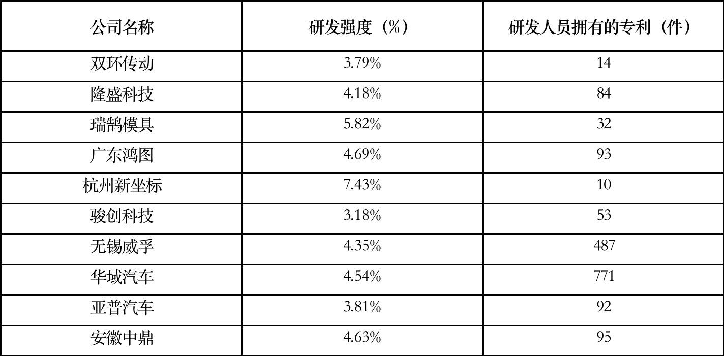 表1 “零部件”赛道企业研发强度和专利发明数(节选)