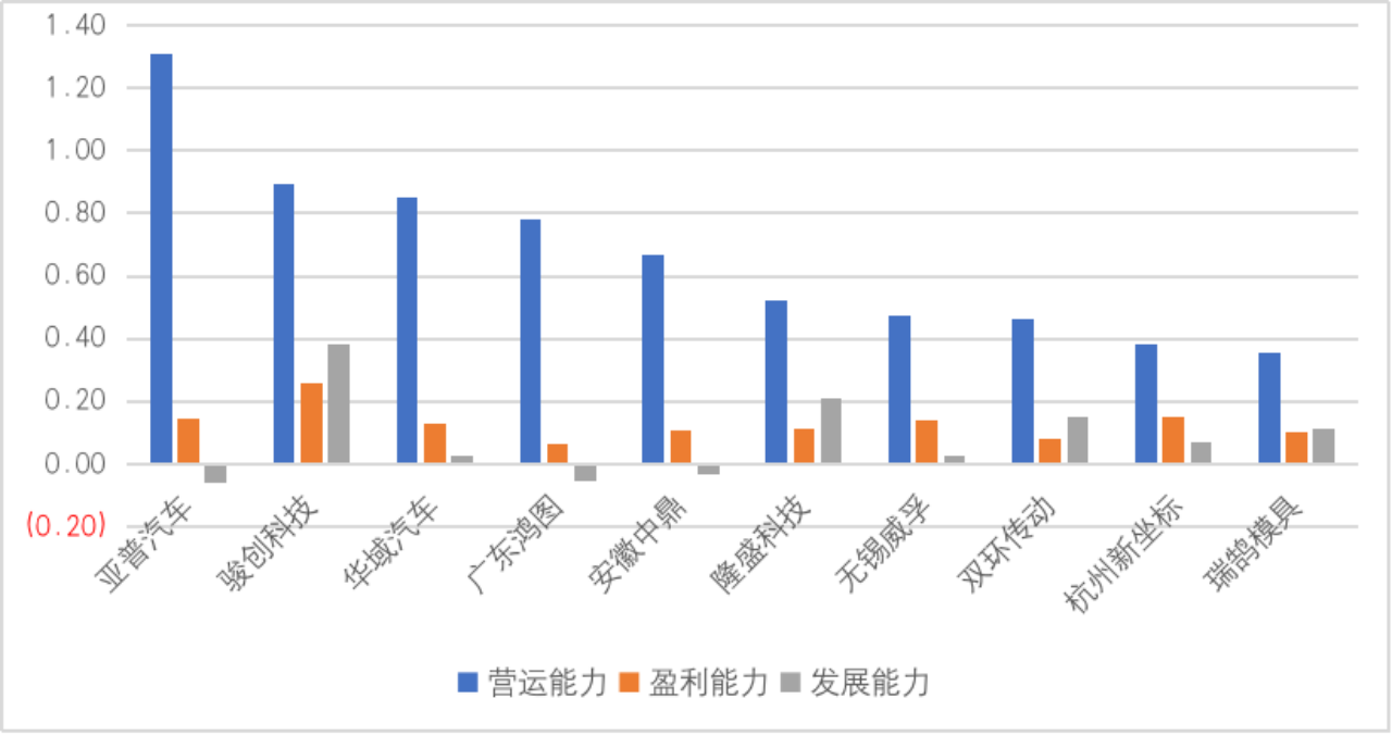 图4 “零部件”赛道企业营运盈利及发展能力(节选)