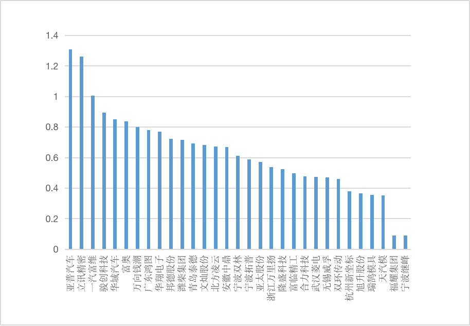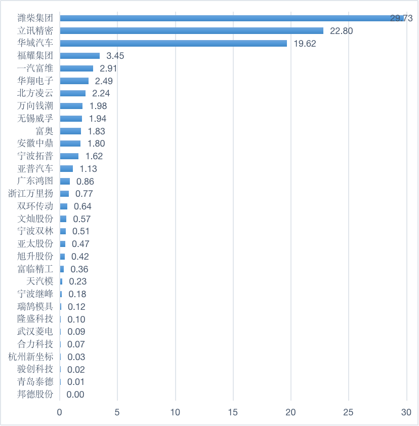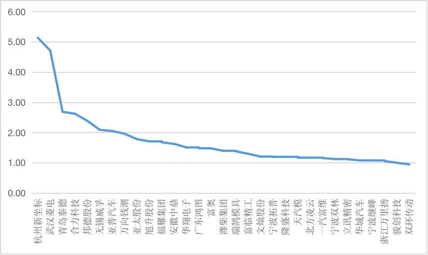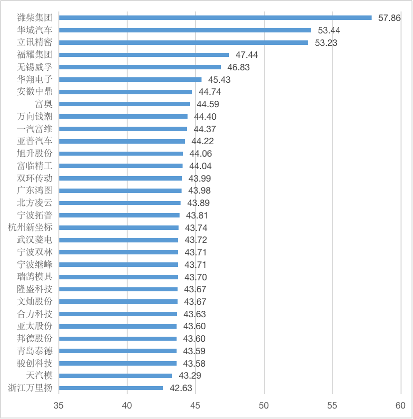 图1 “零部件”赛道企业品牌优势值(100分制)