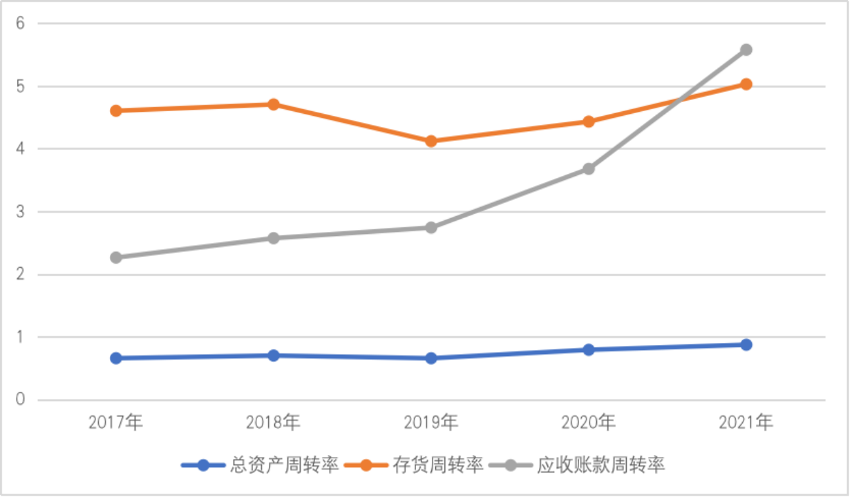 图5 2017年~2021年比亚迪和所在行业的营运能力变动情况