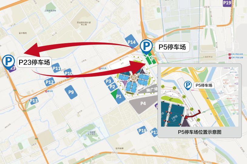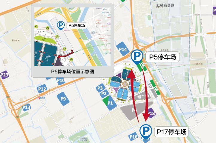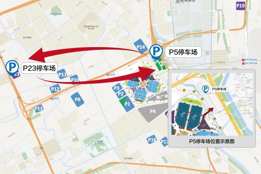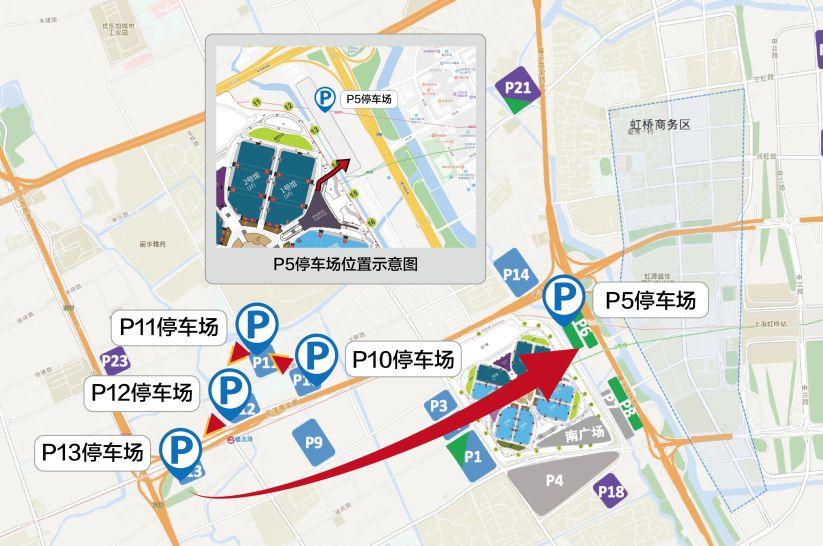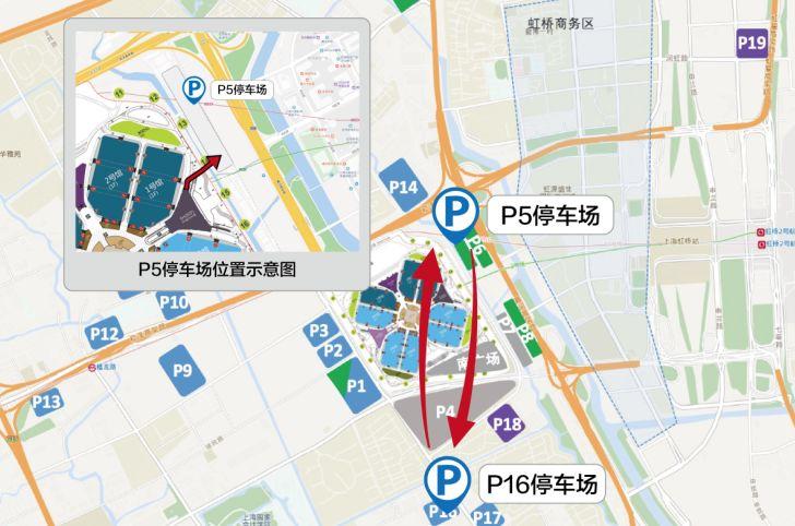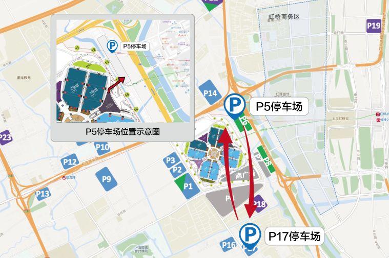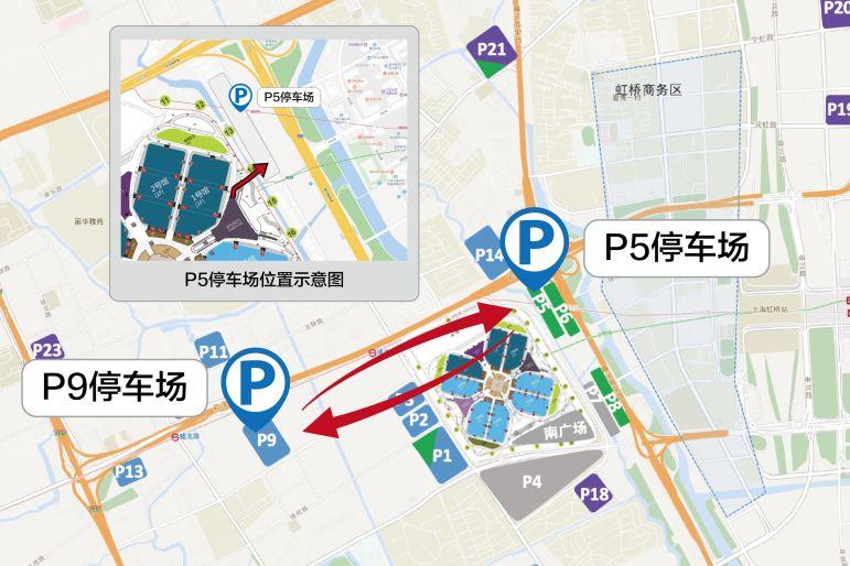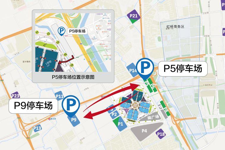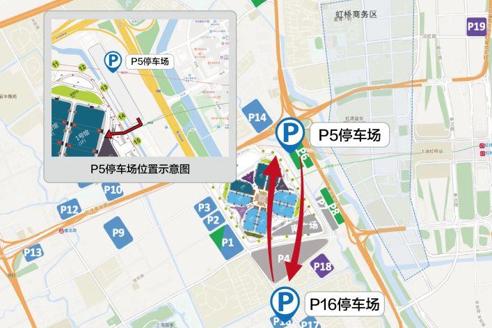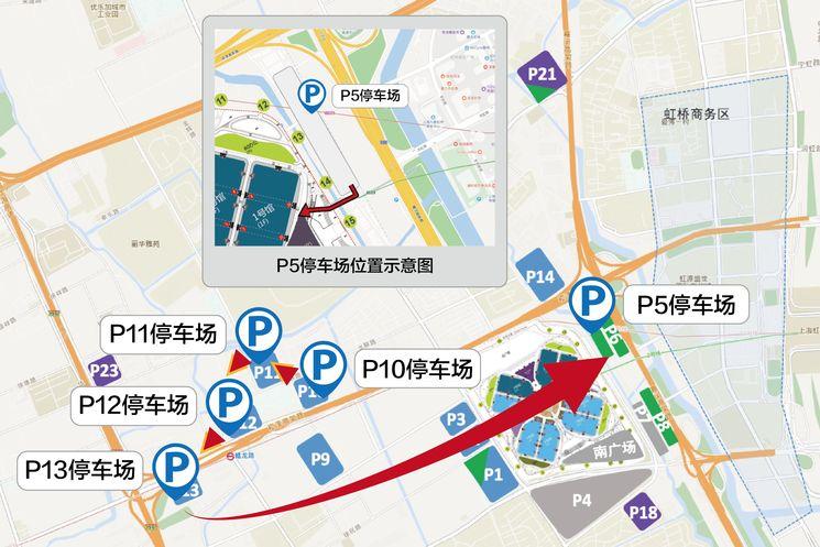 进口博览会期间,观众可选择酒店穿梭巴士和机场专线到达P5停车场。