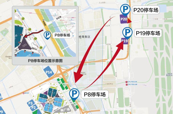 P8停车场内、申昆路润虹路公交站(P19停车场)、申昆路宁虹路公交站(P20停车场)