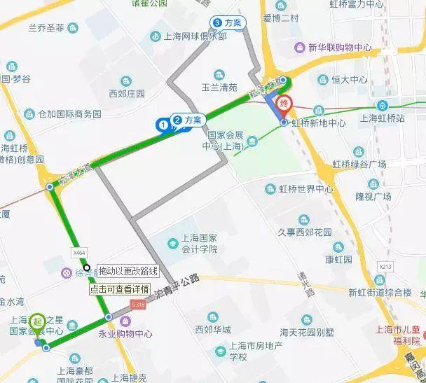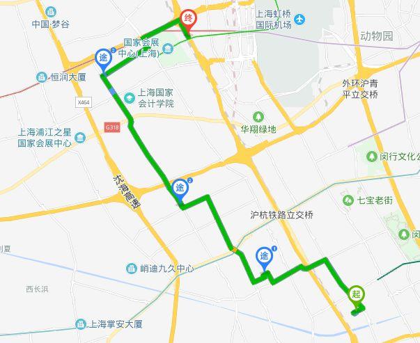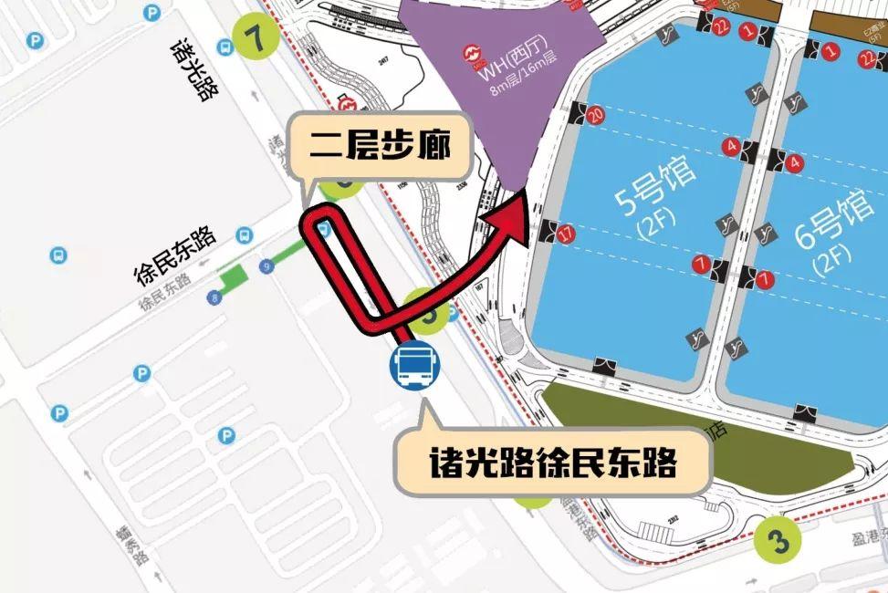 :徐泾东公交枢纽 → 徐民东路 → 徐民东路诸光路路口 → 西侧二层步廊 → 国展会展中心西登录厅