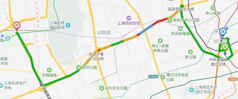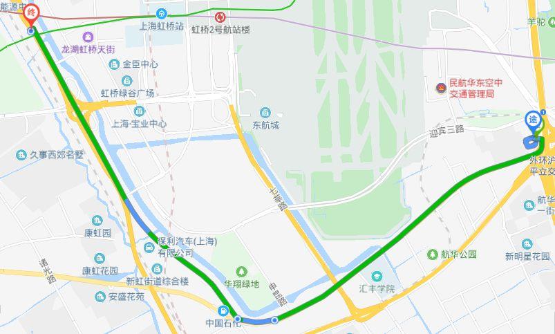 P8停车场、申滨南路兰虹路、申滨南路衢虹路、申长路建虹路、申长路甬虹路、申长路绍虹路、苏虹路申武路、P8停车场(单向环线)